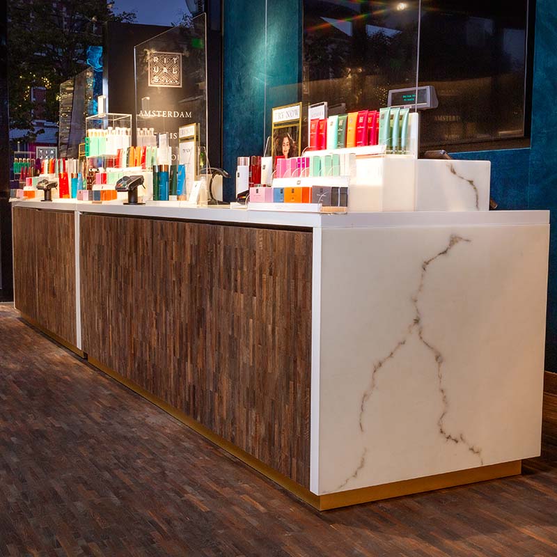De Translucent Stone-collectie betovert met haar allure en tijdloze schoonheid, met de look & feel van het luxe albaster, statige marmer en de mystiek van onyx. Naast dat het lichter is dan natuursteen is het tevens minder kwetsbaar. De platen stralen een subtiele transparantie uit, waardoor het perfect samengaat met verlichting.