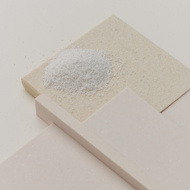 Durat Plus is ’s werelds eerste commercieel verkrijgbare solid surface materiaal dat gerecycled PET-hars en gerecycled solid surface combineert. Met ongeveer 50% gerecycled materiaal biedt het een unieke uitstraling: een egale basiskleur met opvallende, gerecyclede speckles. Deze samples zijn kleiner dan dat je van ons gewend bent!