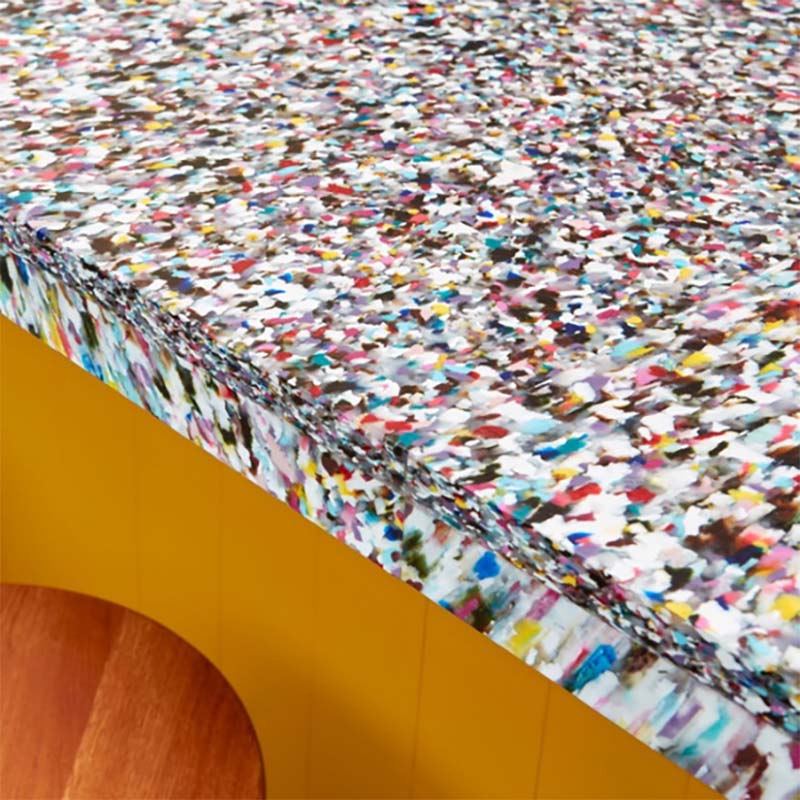 Kaleido is een stevige, kleurrijke plaat gemaakt van 650 tot 2500 gerecyclede PET-flessen, afhankelijk van de dikte. Het materiaal is volledig vocht- en weerbestendig, met een uitstekende brandclassificatie (B2 volgens EN13501). Kaleido is veilig voor gebruik in publieke ruimtes zoals vliegvelden, en combineert duurzaamheid met een levendige uitstraling.
